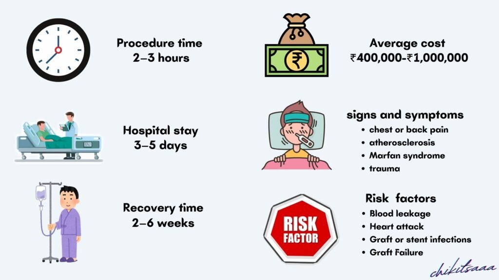 Aortic aneurysm repair is a life-saving procedure for patients at risk of aortic rupture, with India offering world-class treatment at affordable costs. Whether through open surgery or minimally invasive EVAR/TEVAR, patients benefit from advanced technology and skilled surgeons in hospitals like Apollo, Medanta, or AIIMS. By understanding the procedure, cost factors, recovery, risks, and FAQs, patients can approach this surgery with confidence. For personalized advice, consult a vascular or cardiothoracic surgeon promptly to assess your condition and explore treatment options.