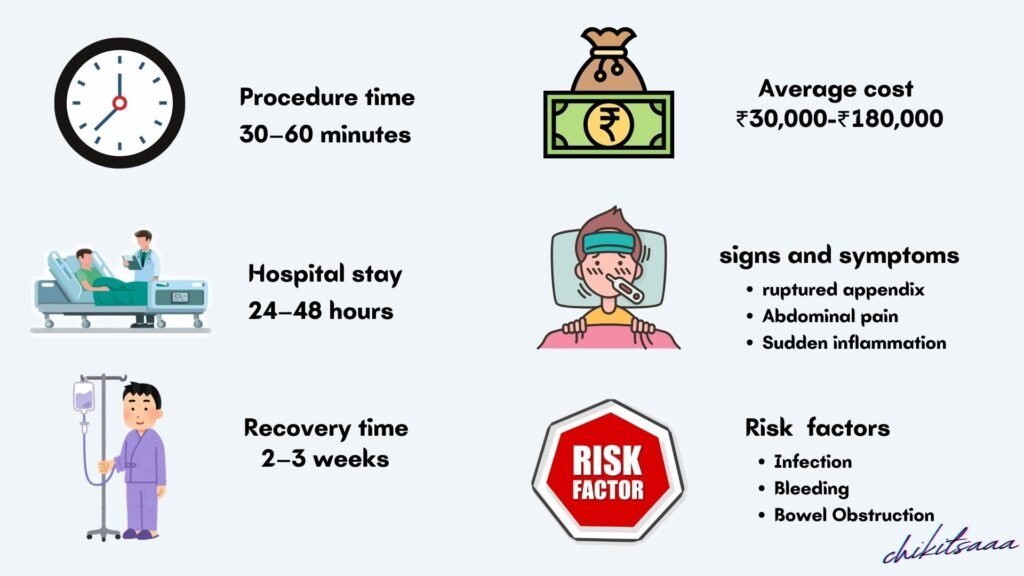 - Insurance & Aid: Most insurance plans cover emergency appendectomies; schemes like Ayushman Bharat offer free or subsidized treatment.