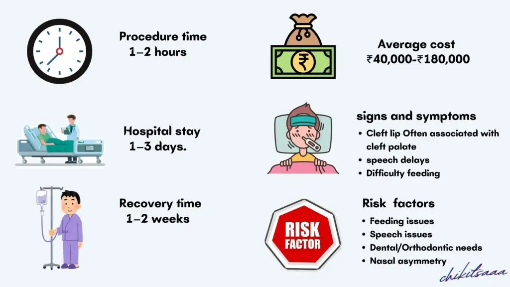 Cleft lip repair is a safe and effective procedure to correct a congenital defect, significantly improving appearance, feeding, and future speech development with a high success rate. India’s top hospitals (Apollo, Fortis, AIIMS) and NGOs like Smile Train provide affordable or free care, often covered by insurance. Understanding the procedure, costs, recovery, risks, and FAQs helps caregivers approach surgery confidently. Consult a plastic or pediatric surgeon for personalized guidance.