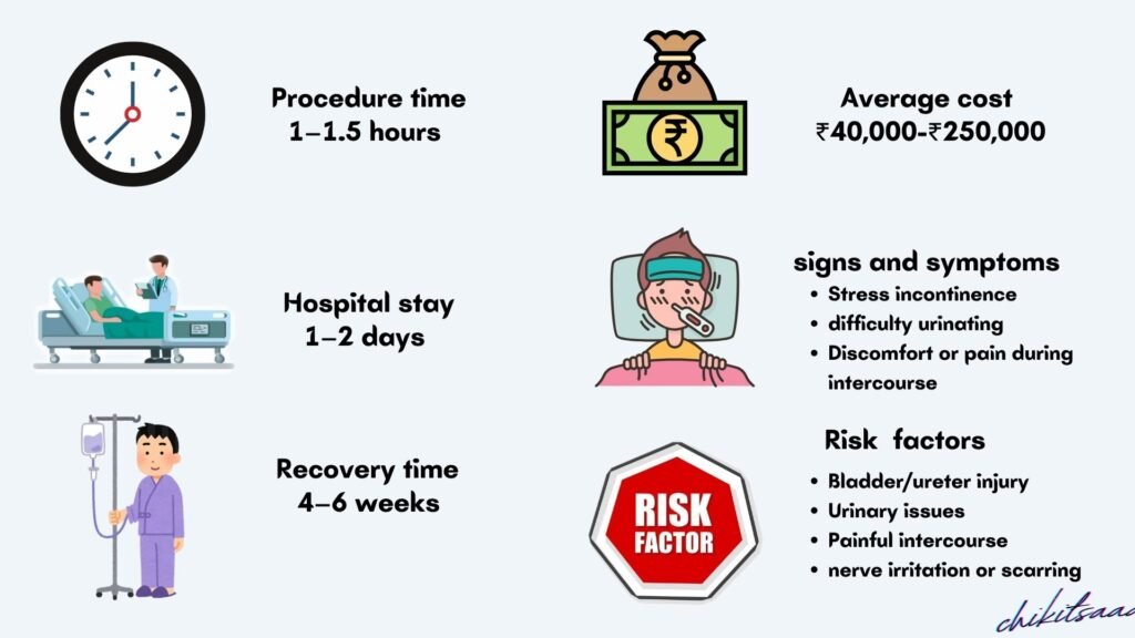- Additional Costs: Anesthesia (₹5,000–₹15,000), hospital stay (₹5,000–₹15,000/day), urodynamic testing (₹5,000–₹10,000).