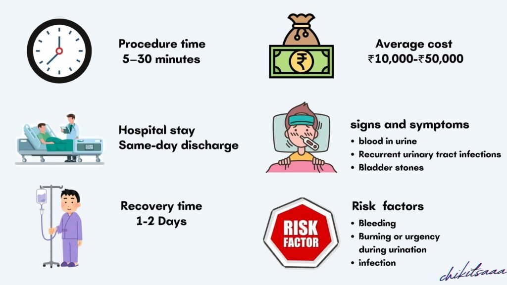 Cystoscopy is a diagnostic or therapeutic procedure that uses a cystoscope—a thin, tube-like instrument with a camera—to visualize the urethra and bladder. It’s commonly performed to investigate urinary symptoms, diagnose bladder conditions, or perform minor treatments. In India, cystoscopies are conducted in urology departments at hospitals like Apollo, Fortis, Medanta, and AIIMS, often at affordable costs. Understanding the procedure, costs, recovery, risks, and FAQs is essential for patients.