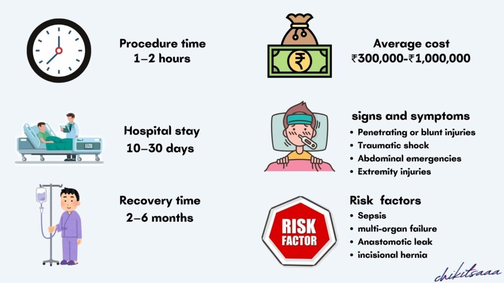 • Procedure Complexity: Initial DCS (₹2–5 lakh), definitive surgery adds costs (₹1–3 lakh).