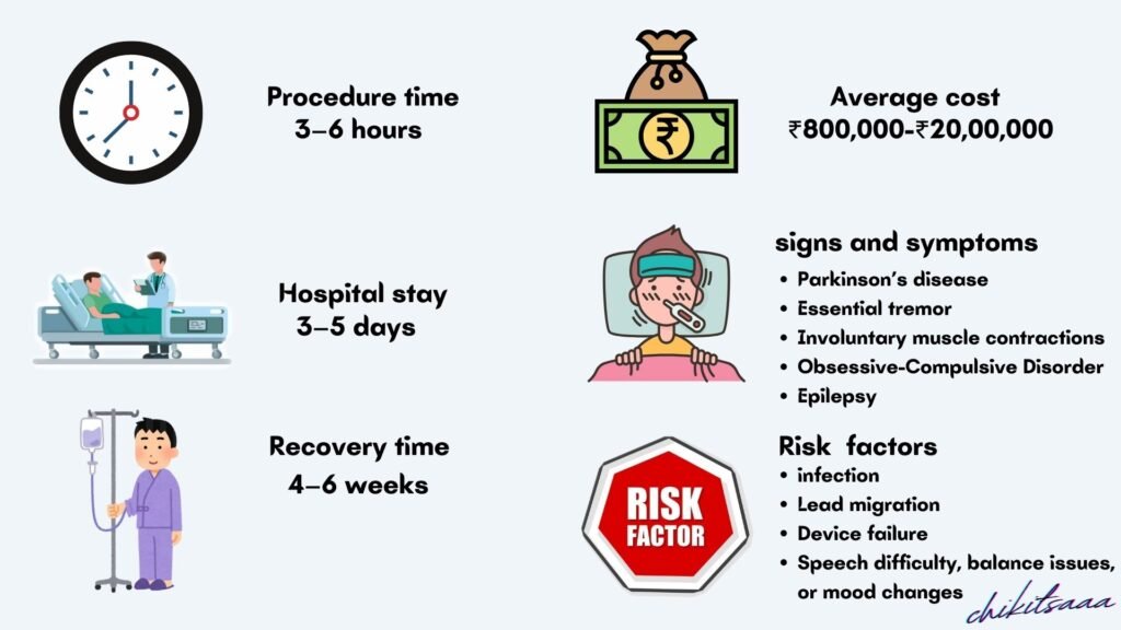 - Long-Term: Battery replacement surgery, disease progression (DBS doesn’t halt underlying condition).