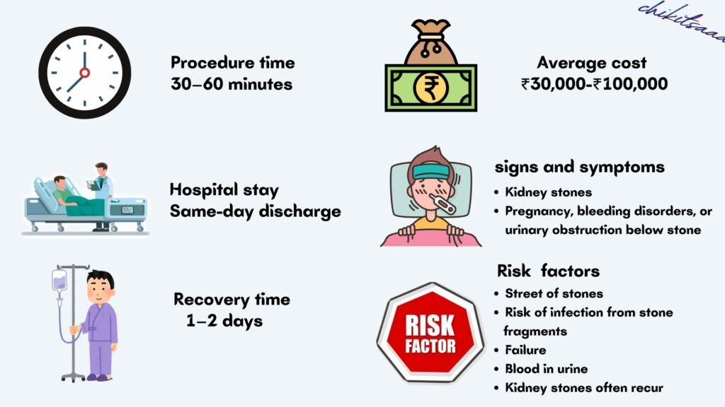 - Timing:- Performed in adults (average age 30–50 years for kidney stones); urgency depends on symptoms (e.g., severe pain, infection).