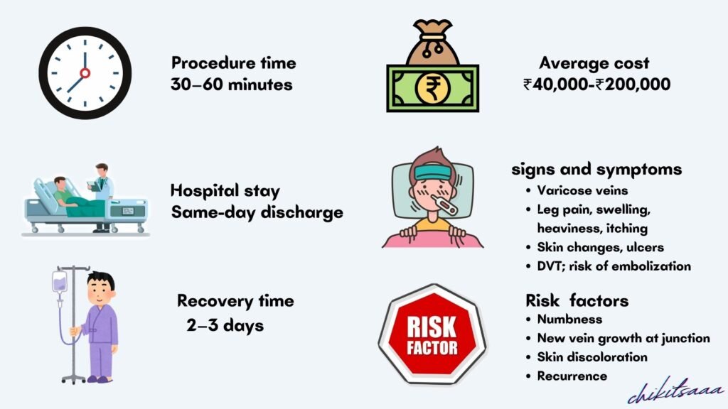 - Additional Costs: Ultrasound (₹2,000–₹5,000), compression stockings (₹2,000–₹5,000), medications (₹1,000–₹3,000).