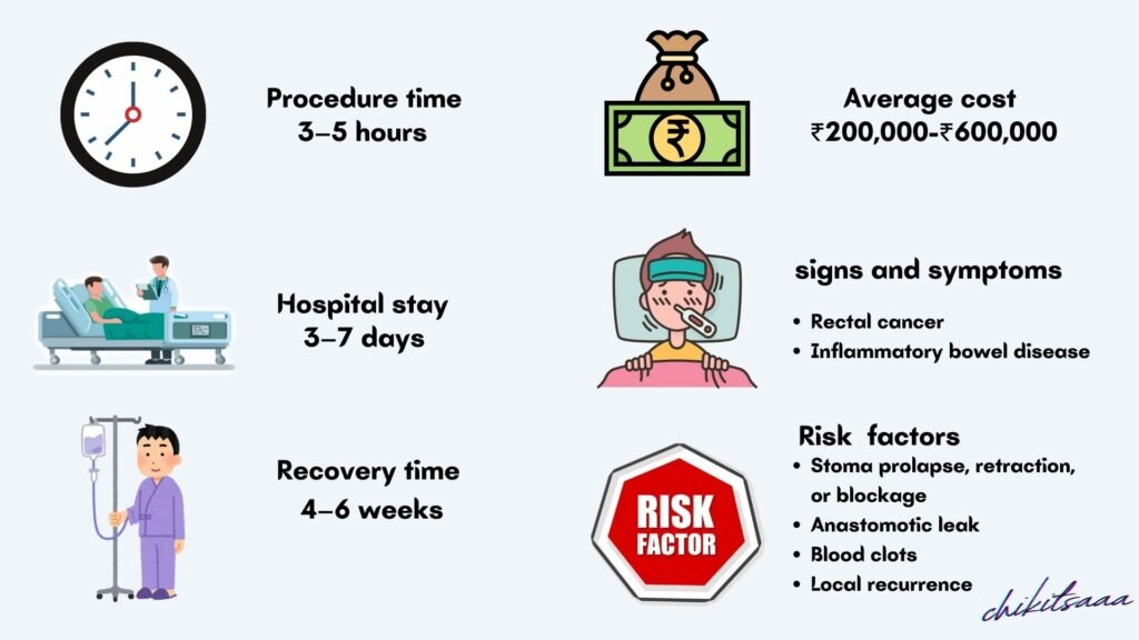 - Insurance & Aid: Most insurance plans cover LAR for cancer or IBD; Ayushman Bharat or crowdfunding platforms can assist eligible patients.