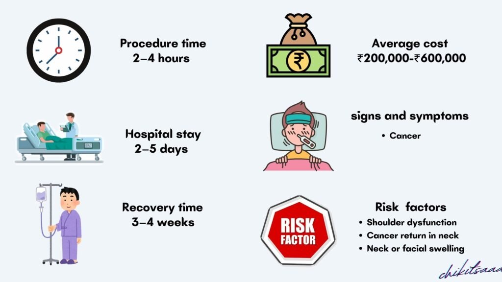 Neck dissection is a critical procedure for managing head and neck cancers, with good outcomes when combined with adjuvant therapy. India’s top hospitals (Apollo, Fortis, Tata Memorial) provide affordable care, often covered by insurance. Understanding the procedure, costs, recovery, risks, and FAQs helps patients approach surgery confidently. Consult a head and neck surgeon for personalized guidance.