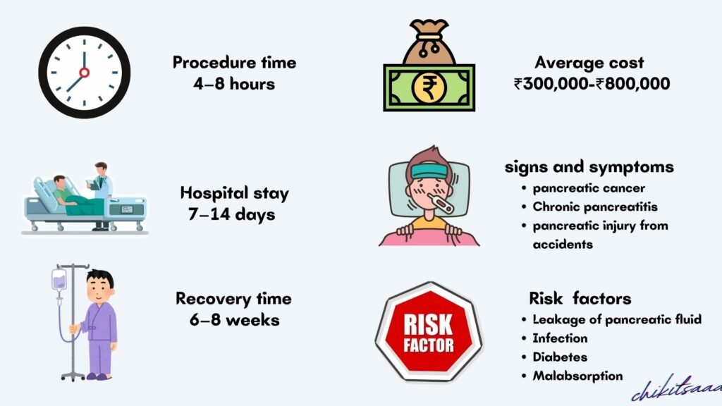 - To treat pancreatic cancer: Pancreatic ductal adenocarcinoma (90% of pancreatic cancers; 1–2 per 100,000 in India), in stages I–III (5-year survival: 20–40% for resectable cases; 5–10% overall due to late diagnosis).