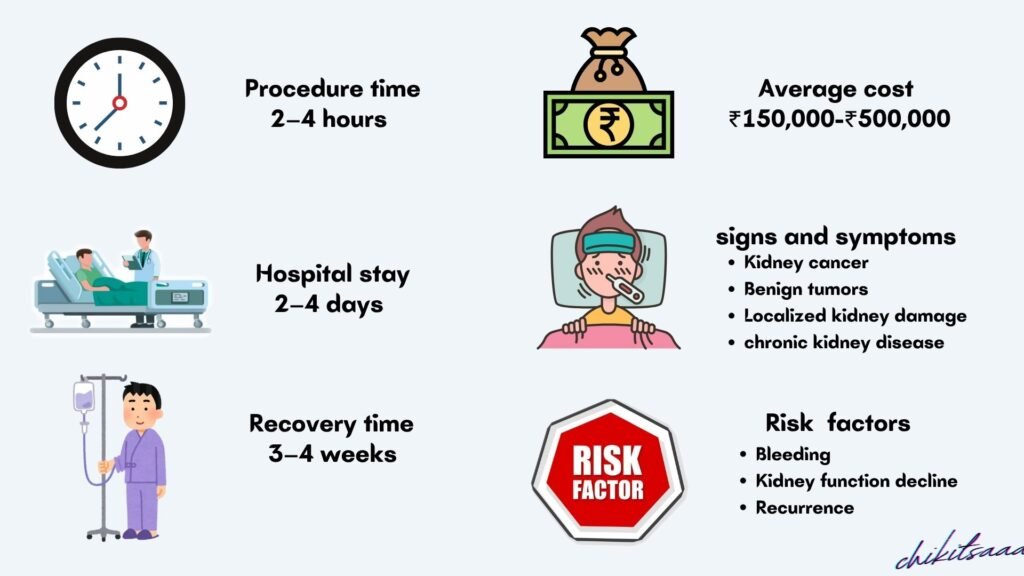 Partial nephrectomy is a safe and effective procedure for treating kidney cancer while preserving kidney function, with excellent outcomes for localized tumors. India’s top hospitals (Apollo, Fortis, AIIMS) provide affordable care, often covered by insurance. Understanding the procedure, costs, recovery, risks, and FAQs helps patients approach surgery confidently. Consult a urologist for personalized guidance.