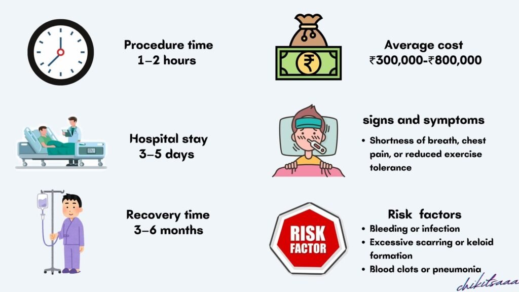 The cost of pectus excavatum repair in India ranges from ₹2 lakh to ₹6 lakh, depending on: