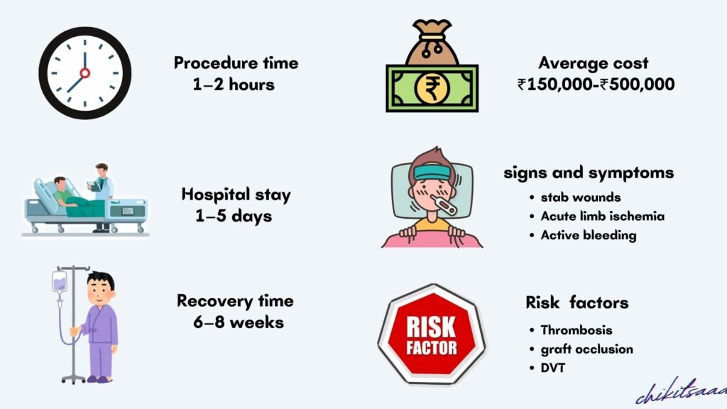 • Additional Costs: ICU stay, diagnostics (CTA, Doppler), grafts/stents (₹50,000–₹2 lakh), fasciotomy, prolonged hospitalization.