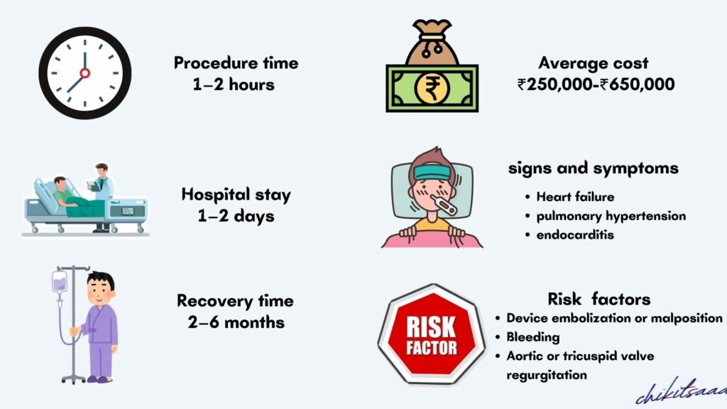 • Procedure Type: Open-heart surgery (₹1.5–4 lakh) is cheaper than catheter-based closure (₹3–6 lakh).